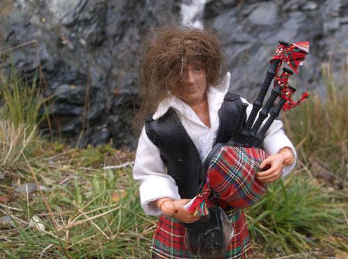 Als sie weiterging hörte sie das markante Spiel eines dudelsacks. Neugierig folgte sie der Musik und vor einem Wasserfall sah sie einen Spieler in Highland dress, also Kilt, der auf seinem dudelsack spielte. Sie setzte sich auf einen Stein um der Musik zuzuhören.